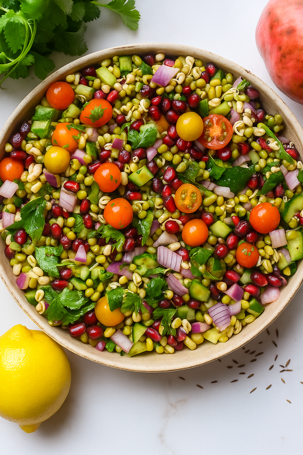Moong Sprouts – plant protein, fiber, energy Tomato – vitamins, skin & immunity Onion – antioxidants, heart health